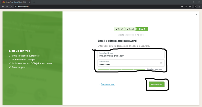 1. Najprej moramo sploh priti do webadorja. To je še najbolj enostavno! Odpri nov zavihek in v iskalnik napiši: webador.com ali pa enostavno klikni tukaj.